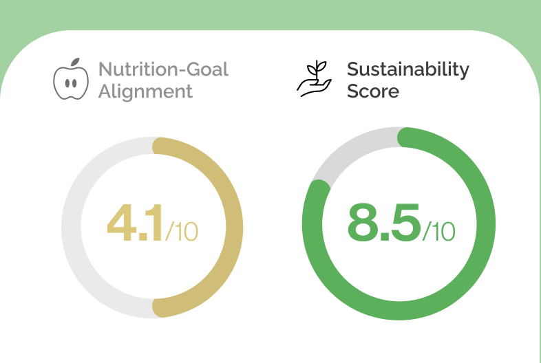 There are growing number of people who want to build sustainable and healthy diet, yet the huge variety of products available makes it hard to know which choices actually support those goals. Whether shopping online or in person, shoppers want to balance personal health with sustainability, but the current grocery experience often lacks clear guidance or support needed to make those decisions confidently.